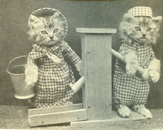 Are you tired of reading these Four Little Kittens posts? Too bad. The story's not over yet, and these poor animals had to endure being stuffed into these tiny clothes and unnatural positions for this limp-noodle children's story. So the least you can do is suck it up and have a little respect for these creatures who didn't get a choice to be involved.