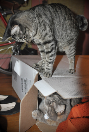 Cat on a box went on the box, obviously, because she was jealous of the cat in the box.